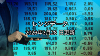レンジデータ 平均レンジデータ更新しました(2026-03-28) 月ごとの平均レンジデータです。毎週月曜日のAM 6:15 頃に前週までの分を公開してます。年間、月間ともに日次データ(BID)からシンプルに算出しています。2026年EURJPYは2026年1月13日に185.53円の最高値を更新。EURJ... 2026.03.30 レンジデータ