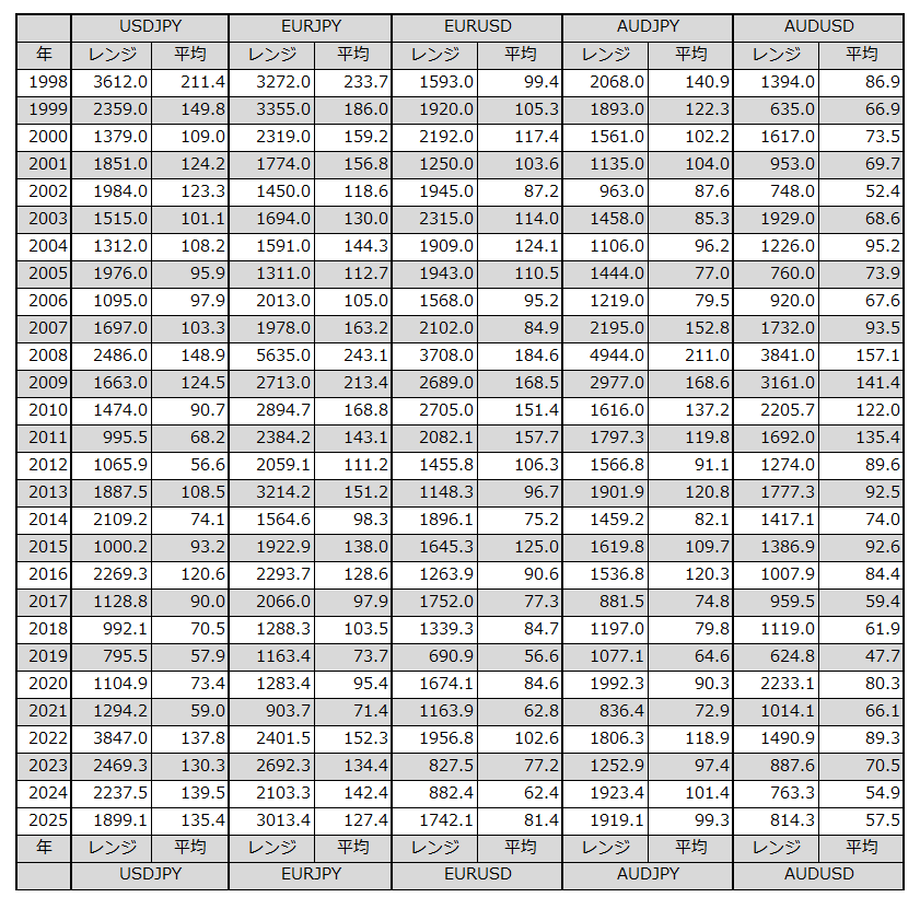 年間の平均レンジ