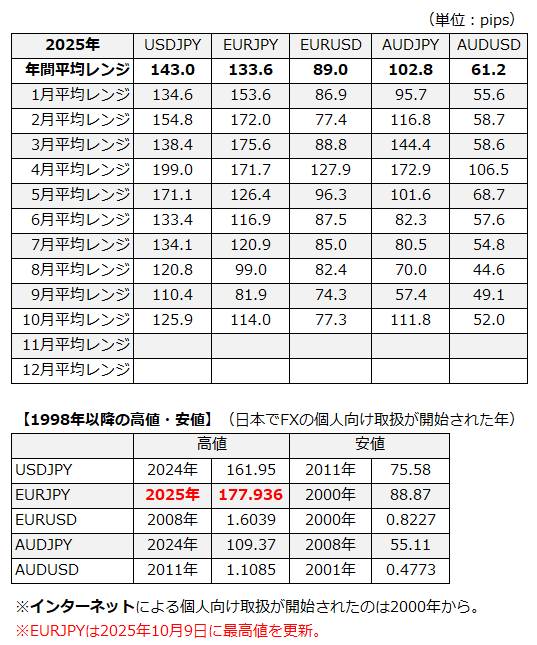 平均レンジデータ更新しました(2025-10-18)
