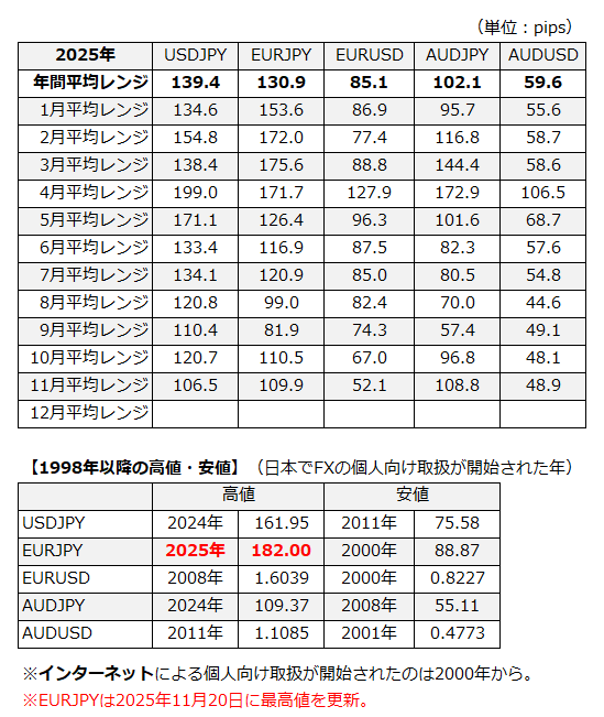 平均レンジデータ更新しました(2025-11-22)